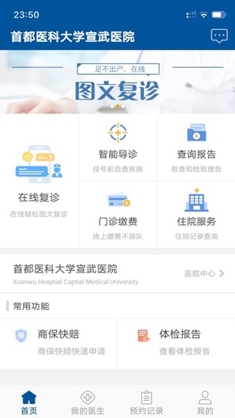 掌上宣武医院为患者提供网上挂号、门诊缴费,报告查询和健康档案的综合服务平台,让医生可以随时随地在线问诊。线上支持医患交流功能,用户还可以查看自己的就诊历史记录以及预约看病信息等情况了。有需要的快来下载吧!