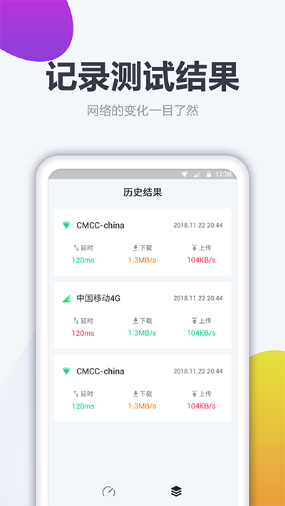 只需三步就能完成手机网速测试,并能根据实际需求设置测试项,同时还可对当前网络进行测速比较。
