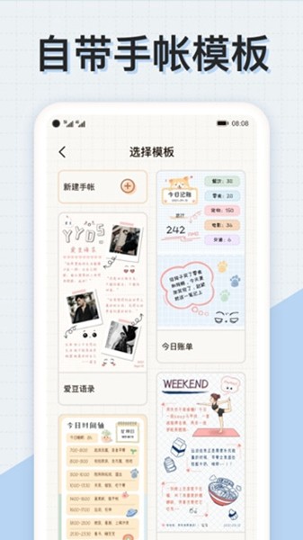 微手帐app是一个非常实用的手机记账应用软件,该软件拥有丰富的模板供用户选择使用,并且还能够将自己记录的数据进行分类管理。其中包含了生活日常、工作学习等多个方面内容可以自由的使用并添加不同的笔记来帮助你完成相关事项;在制作过程中有详细的视频教程让你快速学会如何创作属于自己的精彩视频或者是图片素材都可以轻松上手操作到哦!