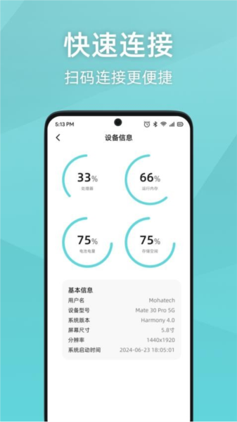 3、简单易用:扫码配对成功后就能开始传输了,不需要联网也可以实现数据的互传服务。