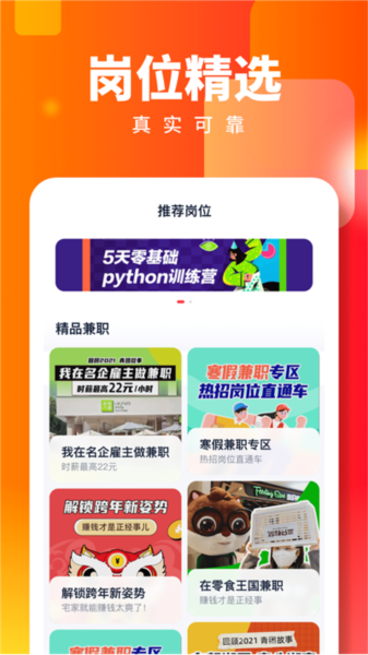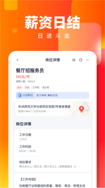 天天兼职APP上的所有职位均由人工审核严格把关,确保真实可靠,让您放心使用。