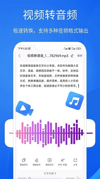 语音文字办公专家是一款针对于天津的录音机、会议室等大型会议场所所使用的一款应用软件,为用户提供便捷实用的功能。通过它能够实现对现场和会议中的各种信息进行记录与分享;并且还拥有智能语音识别技术以及丰富的文档管理功能,
