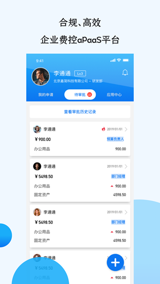 通过悦报销APP实现员工随时随地发起审批事项及提交意见并实时查询待办事务完成进度与状态等功能操作,