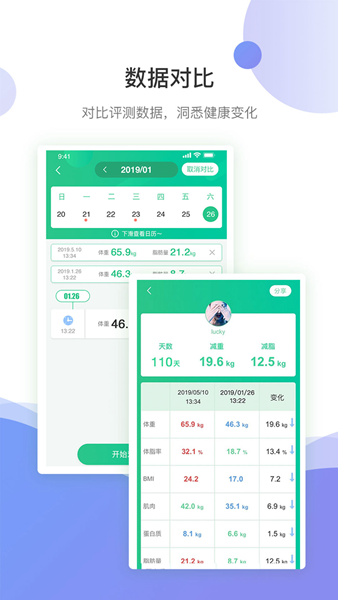 好体知app是专为女性设计的身体检测工具,支持体重、BMI、肌肉水平、基础代谢率、水分饱满度、蛋白质等全面测量,并且提供科学建议及饮食搭配指导,帮助您更好地掌握自身运动状态,同时还能根据用户的运动记录给出相应的饮食搭配建议,让您更科学地减肥,有需要的用户快来下载试一试吧。