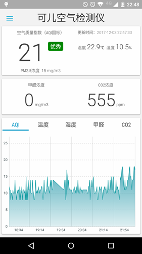 1、实时监测:可儿空气监测仪app能够实时监测室内外的环境质量,包括湿度等信息;