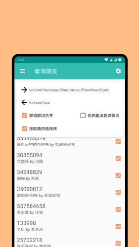 允许用户保存当前所选歌手的歌词内容并在手机中批量删除或者重命名文件。