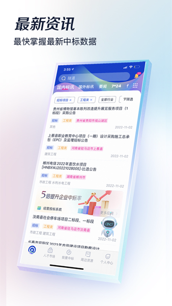 8.“基讯”中有工程机械行业招标公告内容及时推送给用户阅读了解。