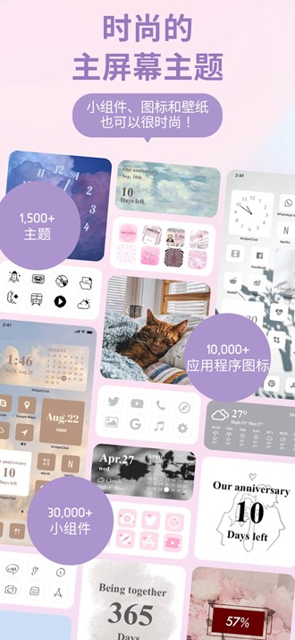 小组件app是一款桌面小部件软件,这款软件提供了多种组件类型供用户选择。您可以自定义手机屏幕的颜色、大小、透明度等参数,让您的手机界面更加个性化。同时,小组件app还提供了丰富的图标和壁纸库资源,帮助您随时更换自己喜欢的壁纸!此外,小组件app还可以添加各种风格的壁纸主题哦!