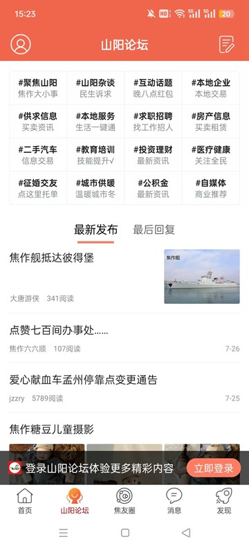 山阳论坛APP是专门为焦作市打造的社区生活服务平台,这里有最新最热的本地新闻资讯、爆料八卦和民生动态等内容。用户还可以在平台上进行同城交友聊天哦。