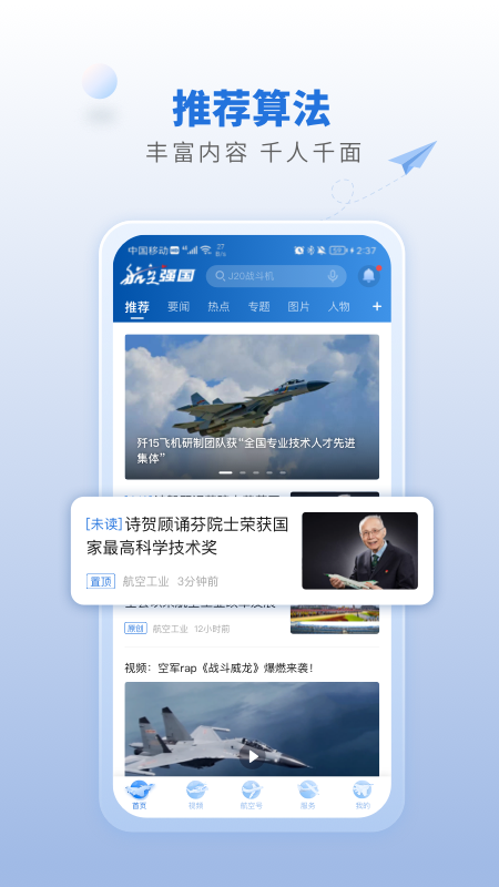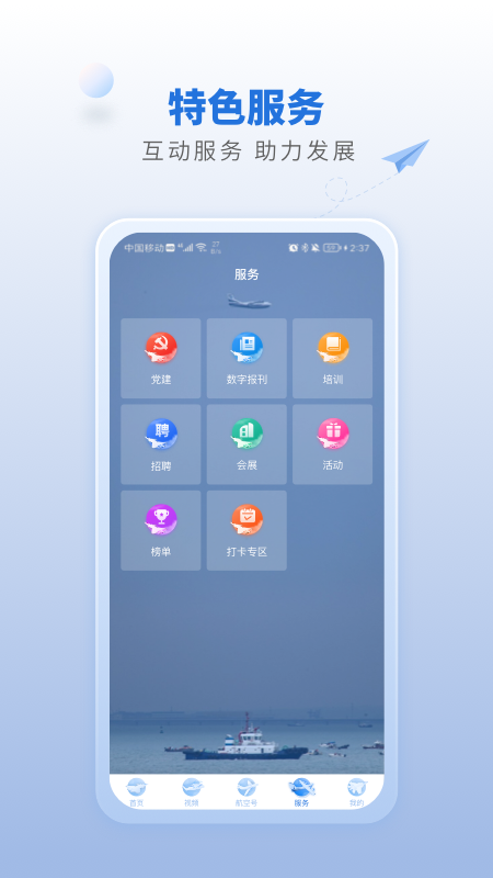 国内首个提供航工期航空业新闻服务的全媒体客户端产品。以航空工业集团为核心,以“原创、深度、深度、广度、开放、融合”为理念,致力于为用户提供权威、专业、个性化的航空新闻资讯。“航班”、“飞机场”“机场”,全方位满足用户对航空航空业新闻的需求。