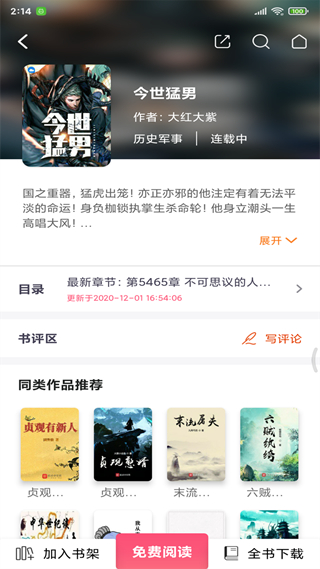 3、选择想要看的小说后可以进入到详情页里查看介绍和目录等信息等等详细的内容哦!