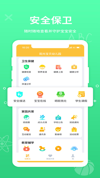6、“幼家圈”,能够帮助广大幼儿园更好的实现教学管理一体化应用,提供丰富的校园社交网络资源供学生使用。
