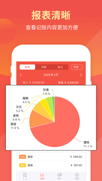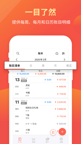 1、简约的记账界面让你可以更好的掌握自己的每一笔消费内容啦。