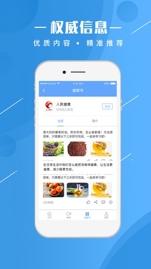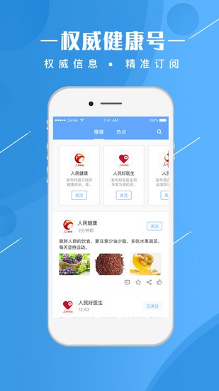 “人民健康”APP是人民卫生部主办的移动互联产品,是国内权威的综合健康管理服务平台;为广大用户提供包括线上预约挂号、诊疗缴费、报告查询与在线问医、健康档案办理等多项便民服务的移动终端应用客户端。人民卫生App旨在让百姓用一个APP就可以享受到全国范围最全面、最权威的健康检测机构及医疗健康服务,并通过互联网实现患者与医护人员之间的即时沟通交流,真正做到足不出户就可了解最新健康资讯。同时,人民卫生App还为广大患者提供一站式病患互助渠道,