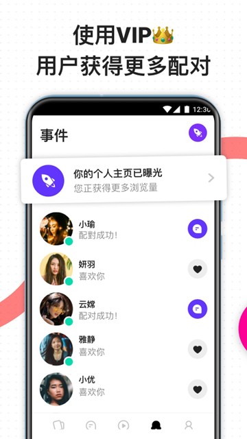 6.【视频速配】一键匹配合适的人选模式,面对面即时音频交互,迅速找到心动对象。