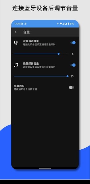 Audio Connect Widget)是手机上的一个蓝牙辅助工具 蓝牙音频小部件app是专为耳机打造的智能控制工具,使用软件可以帮助用户快速进行声音设置。各种功能都可自由体验