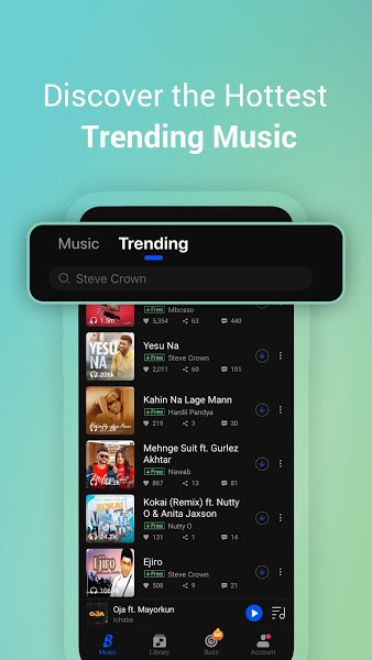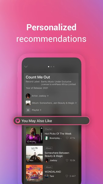 boomplay是专为Bokplay会员打造的一款音乐播放器,用户可以通过它随时随地在线收听各类音乐资源;软件内置了强大的搜索引擎和搜索功能,让您轻松找到想听的音乐类型、风格以及歌手等内容。无论是流行歌曲还是经典老歌,都能在这里直接播放并免费畅听!