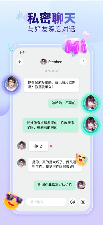 【开放式互动场景】 以真实感、沉浸感、创造性表达方式为基础,为广大用户的社交需求带来全新的体验,为每一位用户打造一个开放式的社交场景。
