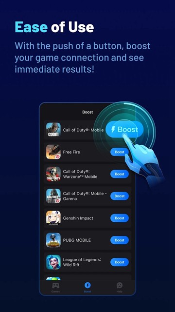 3、快速启动:您只需打开这个应用程序即可开始加速,即使关闭了后也能继续游戏。