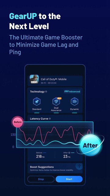 Booster游戏加速器是专为喜欢玩手游的用户打造的加速器 GearUP安卓游戏加速器是一款由三星官方推出的手机加速器软件,这款软件可以帮助用户提升游戏流畅程度,让游戏变得更加稳定。同时这款软件还可以为玩家提供多种游戏优化功能和辅助工具使用,让你在手机上享受更舒适的体验。