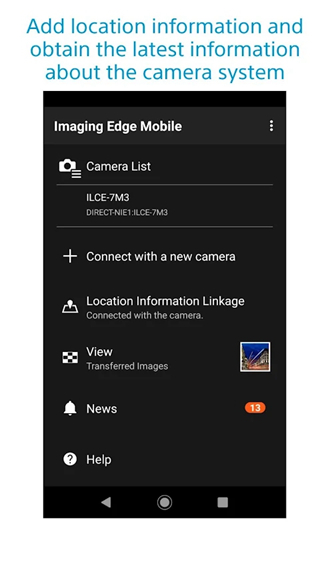 Edge Mobile 索尼相机传照片的app全称为ICanonCameraConnect。这是一款专为索威官方提供的智能手机应用程序,旨在让您轻松将您的智能设备与相机的兼容性连接到相片或图像文件中。这款应用程序允许用户直接从Android设备传输和编辑照片并将其导入到设备上,包括相册、文档和电影等。