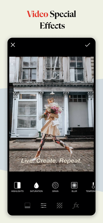 2、照片编辑器:超过200种预设布局可供选择,并支持智能裁剪和旋钮调整。
