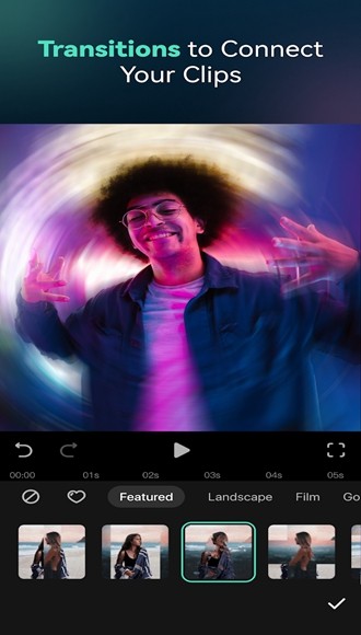 丰富的过渡效果,炫目的动态贴纸,叠加特效应用。