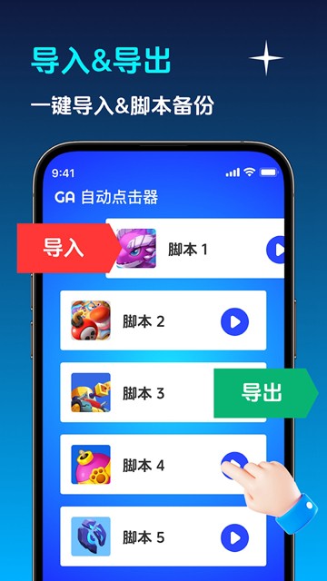 支持多种类型脚本:包括点击、滑动、长按、拖拽等;