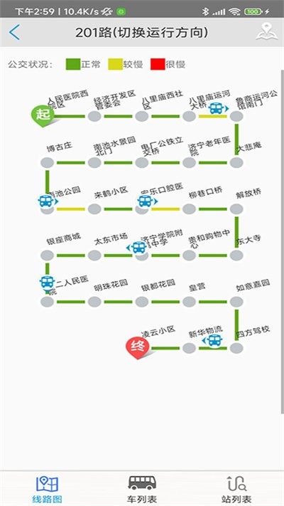 通过定位技术呈现附近的公交站点列表中所有公交车时刻动态掌握车辆最新动态。
