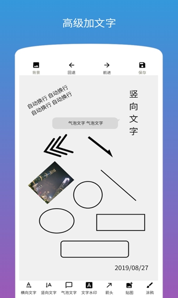 -添加水印:在图片上任意添加文字信息或自定义logo;