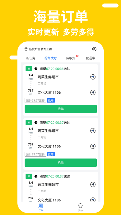 快慢递:帮助用户实时接收海量的订单资源,