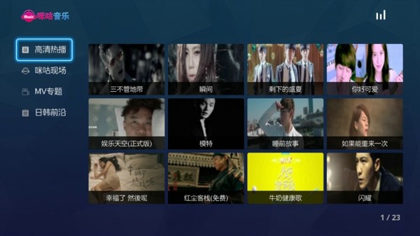 咪咕音乐电视设计的音乐软件是专为智能电视而量身打造的一款音乐播放器。这款应用以其独特的音效和海量的音乐库,成为了用户在智能电视或手机上的首选音乐播放平台之一,让用户可以享受到更舒适的听歌体验。咪咕音乐TV版不仅拥有丰富的音乐资源、个性化的推荐系统以及卓越的使用体验,还具备多种功能与特色,如在线搜索、收藏歌曲等,帮助用户更好地管理自己的音乐内容;同时,用户还能轻松创建自己喜欢的歌曲列表并将其设置为铃声来作为提醒通知方式