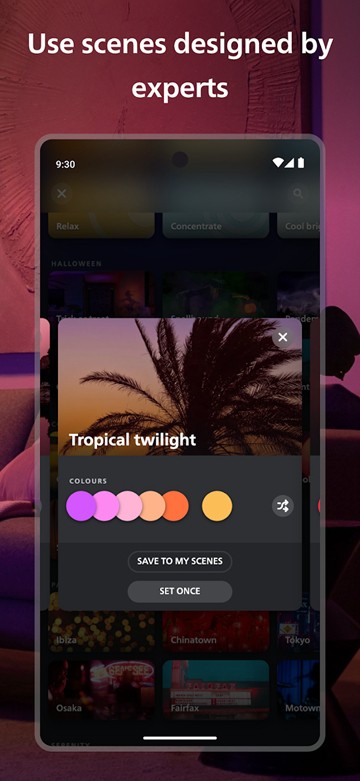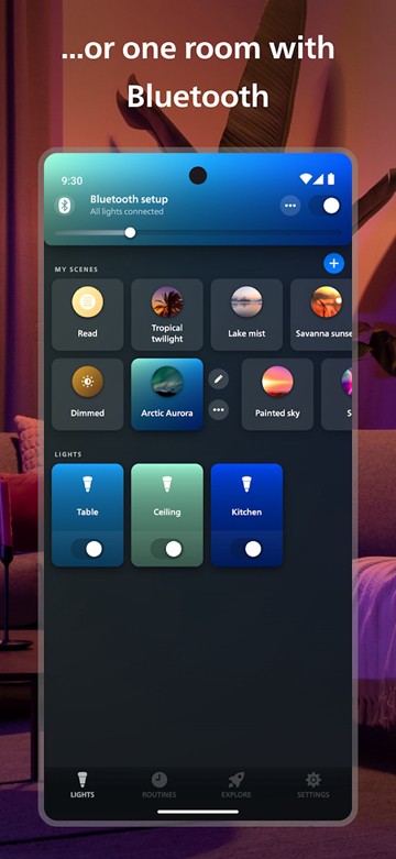 您可以将您想要使用的灯具添加到应用中并将其保存在您的移动设备中。您可以选择一个您喜欢的颜色来显示灯光效果。