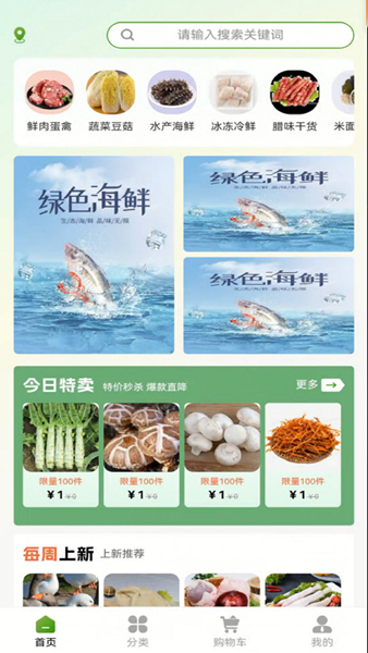 “大平台上”的一款移动端生鲜产品,为用户提供便捷的线上购菜、下单等功能和服务;同时还为线下线下实体店打造了线上门店销售的新模式。通过APP随时随地浏览附近生鲜门店信息及优惠活动,