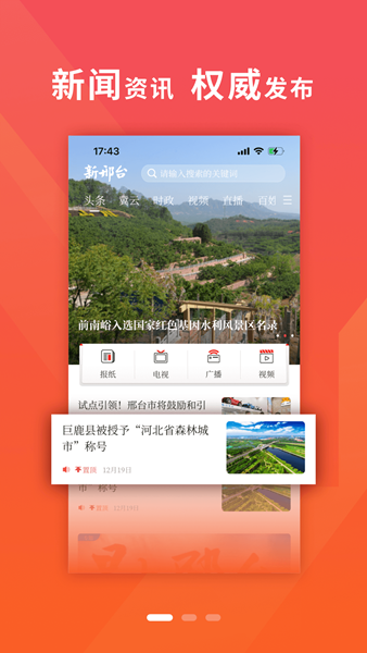 新锡中app是一款由山东省委宣传部和河北省邢台州融媒体中心主办的权威新闻发布与互动阅读平台,具有丰富的本土文化活动资源及贴心的政务服务,