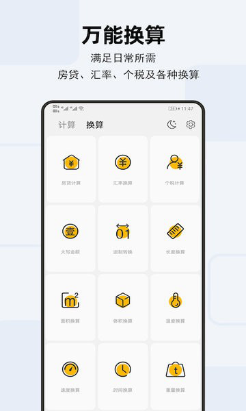 进制转换:一键切换基准货币,支持二进制、八十进制、十六计数之间任意转换。