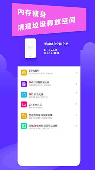 一站式提升手机运行速度的同时保证手机流畅运行;