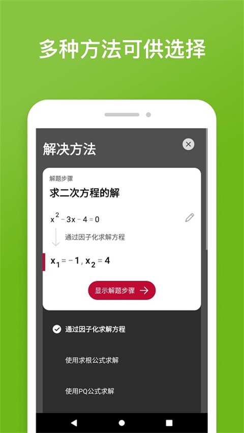 只需输入数学问题,Photomath会立即为您出结果并给出详细指导;