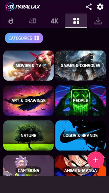 Parallax Wallpaper)是一个功能强大的壁纸软件 Wallpapers是一个功能强大的4d视觉壁纸软件,在该版本中为用户提供了超多高清无水印的动态视频壁纸资源。软件内有着丰富的4D壁纸分类供大家选择使用!软件不仅拥有海量精美的4k动态壁纸和3K视频桌面主题,还可以将自己喜欢的图片设置为动态壁纸、透明桌面背景以及自定义来电视频秀等内容哦!