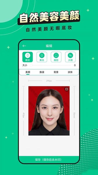 拥有强大的人脸识别技术,自动校正光线水平,色温冷暖等,给您证件照制作一个完美的人像。