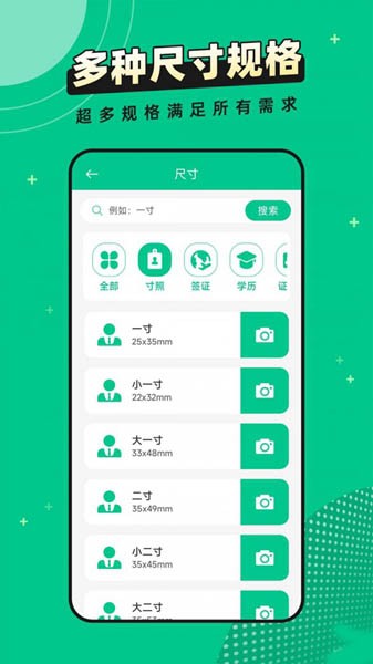从常规尺寸到各种考试报名所需证件照应有尽有。
