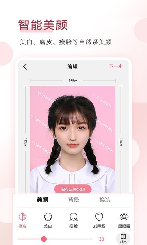-背景更换:根据不同的场景精准推荐背景色,让证件照从不同角度贴合您的证件照特点,保证证件照的专业度和正确率。