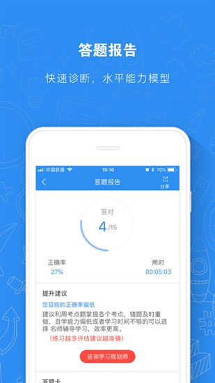 通过记录用户的做题情况以及错题数据分析推荐相关题目给用户强化训练记忆;