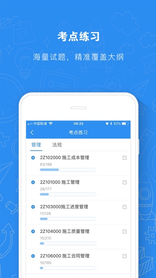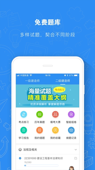 根据官方发布建设部发布的“模拟试卷”成绩单,预测分数。还有“押题”、“估分”,“考前冲刺”等板块。力争让你在实战中突破短板。