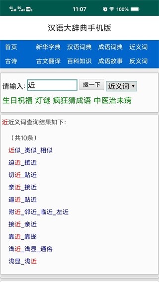 汉语大辞典是款简单好用的手机词典app,开启之后用户们可以在线进行各种查询和学习。软件用法也非常方便适合我们日常使用和选择体验。需要的朋友不妨速速下载试试吧!