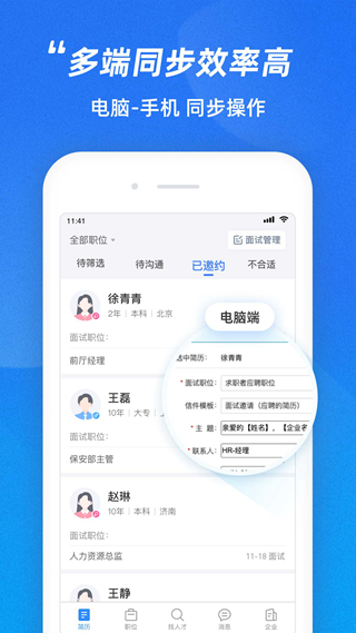 最集团旗下的企业端应用,为广大的个人或公司提供找工作的平台,主要以求职者、企业及求职者需求为切入点,致力于提供专业可靠的求职服务,让求职者与求职者之间更加便捷高效地建立联系,从而更好地了解自己感兴趣的工作信息以及人才的需求,实现精准匹配目标职位;同时也可以发布相关招工动态并实时更新到app内查看最新发布的招聘信息内容,