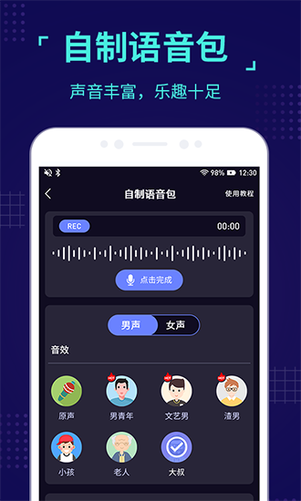 您可以根据自己的喜好更改不同的语音效果,包括男声、女声、童声等。