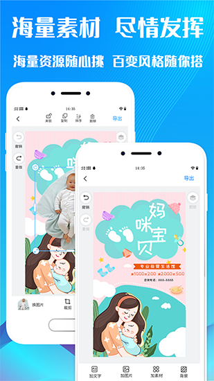 海报设计师是款实用的海报设计软件,它可以帮助你轻松制作出精美的海报。你可以将图片导入进去进行编辑并添加滤镜、特效等元素以获得视觉效果。它的操作非常简单,即使没有专业的摄影技巧也可以上手使用。