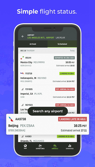 应用程序定期更新航班状态,以保持航班的最新动态,方便您始终掌握第一手信息。