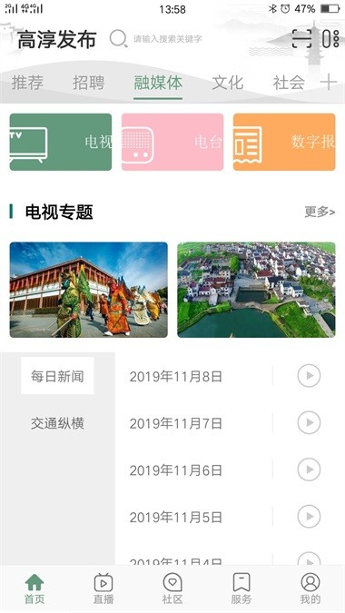 1.“高禹镇高敞区融媒体中心”是高宥县广播电视台重点打造,以“移动互联网+”理念,集新闻报道、民生互动、便民查询等多项功能于一体,旨在为广大市民提供优质的服务体验。